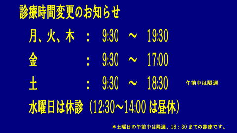 • 診療時間の変更、休診等のお知らせ